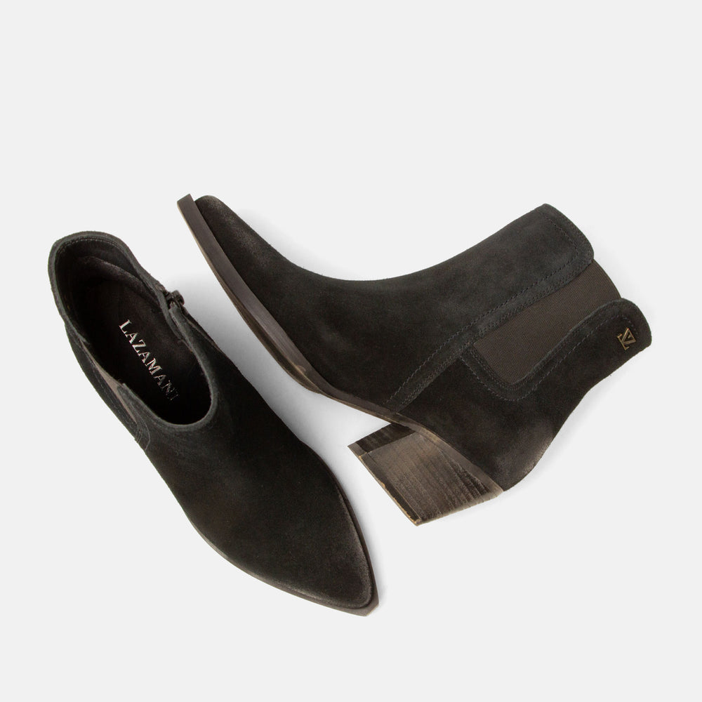Meet your new go-to boots for the season: these black suede chelsea ankle boots from Lazamani. With their elegant silhouette, 5 cm block heel and refined detailing, they add an effortless western-chic touch to any outfit. The soft suede feels luxurious, while the timeless shade pairs beautifully with everything from rugged denim to a flowy dress. A side zip and elastic panel make them easy to slip on and off, while the soft textile lining and leather footbed ensure lasting comfort. Perfect for anyone who loves elegance with a hint of cowboy style.