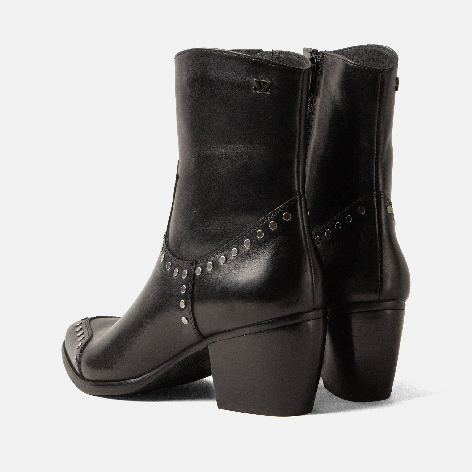 Black Leather Ankle Boots with Block Heel and Studs
