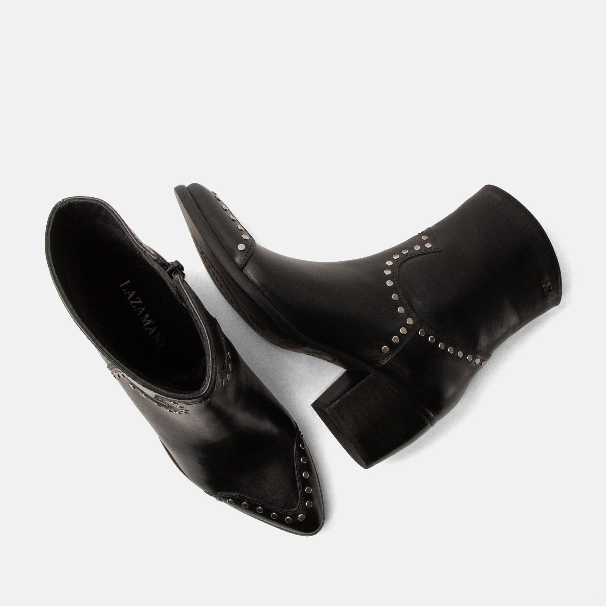 Opt for elegance with a rock-chic edge in these ankle boots from Lazamani – designed for women who love style with character. The smooth leather provides a luxurious base, while silver-tone studs trace the lines of the design for a subtle, edgy touch. The 6 cm block heel gives you just the right amount of lift without sacrificing comfort, and the pointed toe adds a refined, feminine finish. Pair them with skinny jeans and a leather jacket for a tough-luxe vibe, or wear them with a flowing dress for a stylish contrast.