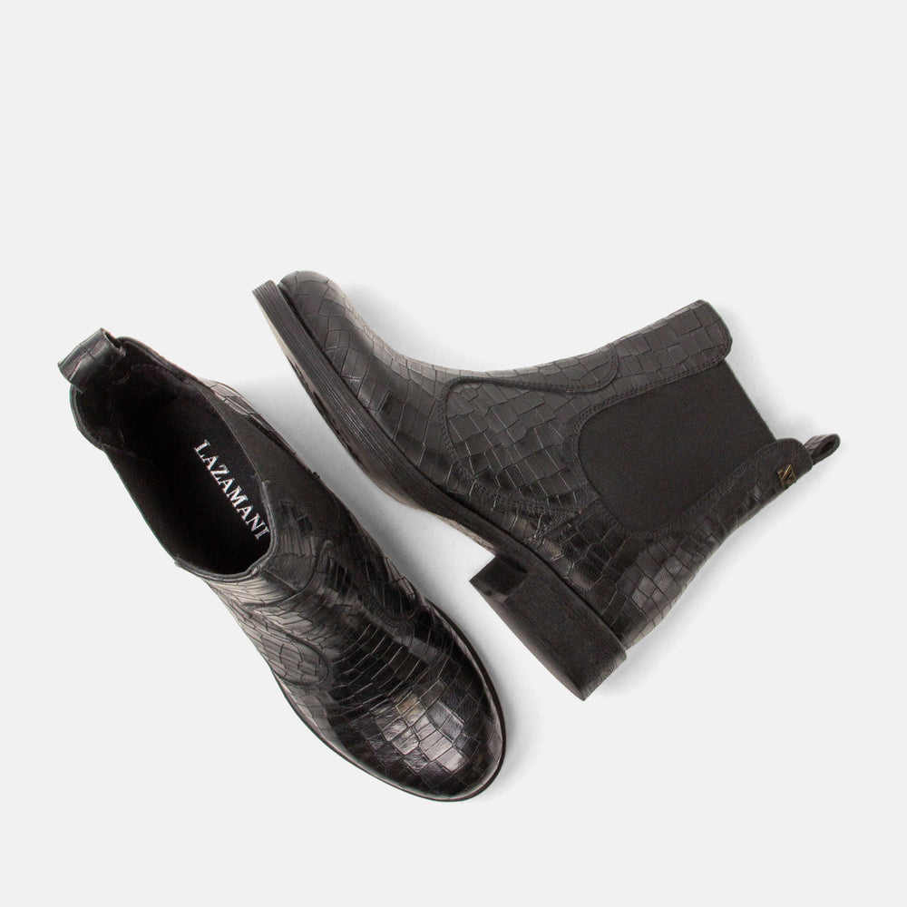 These Chelsea boots from Lazamani blend timeless elegance with a bold twist. The croc-embossed leather gives them a luxurious look, adding a touch of intrigue to the classic design. Elastic side panels ensure easy slip-on wear, while the low heel and comfortable fit make them perfect for everyday use. Whether you style them with jeans and a blazer for a city-chic vibe or a leather skirt for a daring twist, these boots are the perfect finishing touch to any outfit.