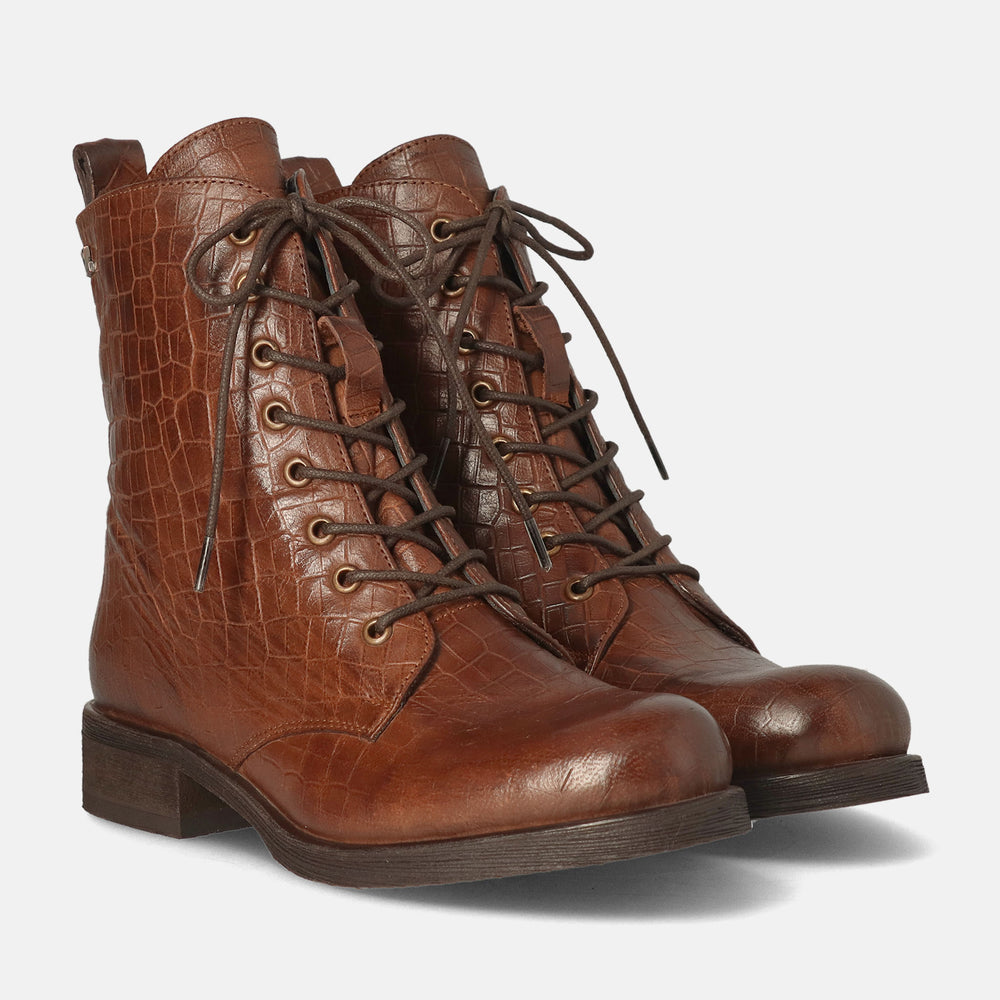Bold, stylish and effortlessly versatile – the Nella lace-up boots from Lazamani are a must-have for women who value both comfort and character. Crafted from premium leather with a croc-embossed finish, they exude a luxurious yet powerful appeal, while the warm brown shade gives them a timeless, easy-to-style appeal. The combination of laces and a practical side zip makes them easy to slip on and ensures a personalised fit. A durable rubber sole delivers grip and stability, making them perfect for long days or active weekends. Wear them with jeans for a laid-back vibe, or pair them with a dress for a tough-luxe twist.