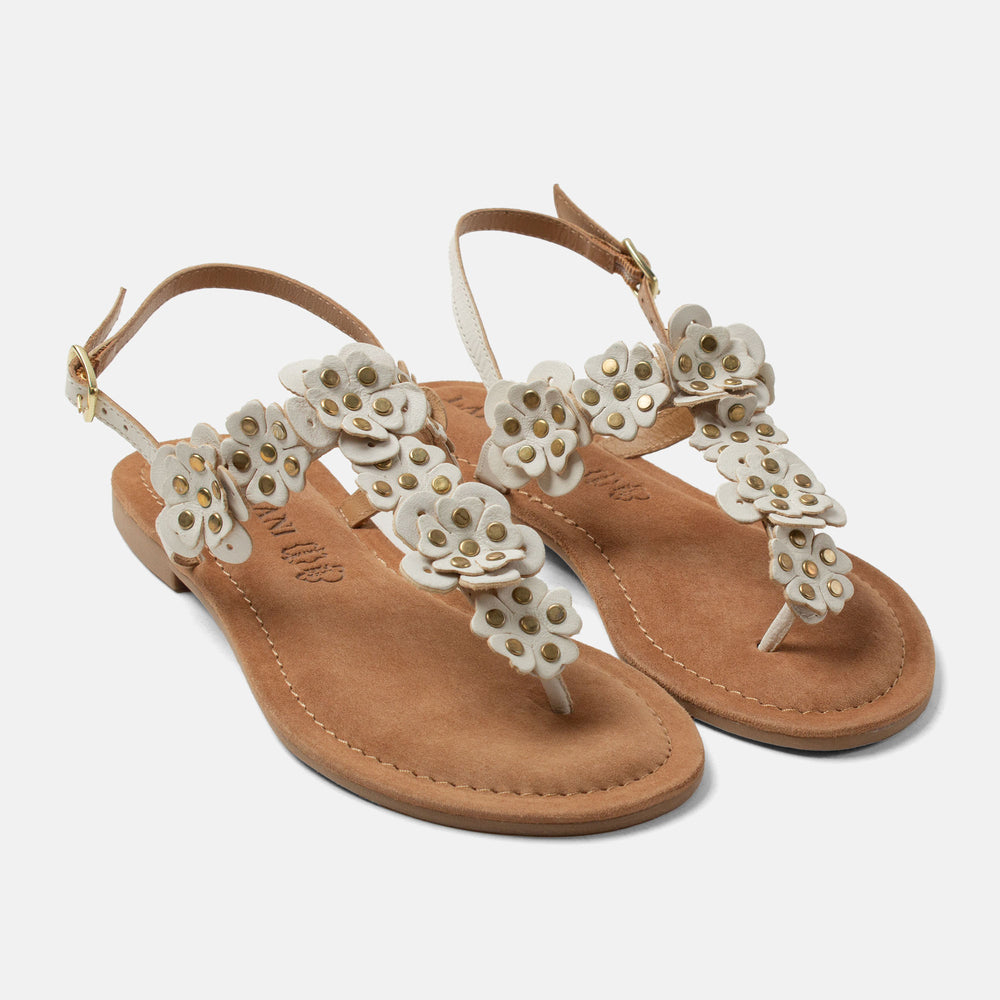 Toe Sandals with Floral Details and Studs