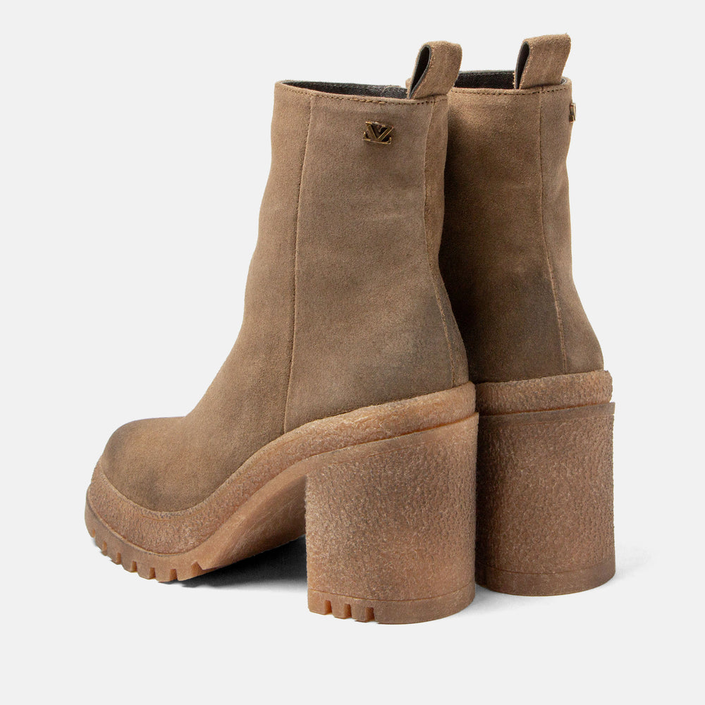 Warm, stylish and contemporary – the Rowan boots from Lazamani are made to impress. The soft taupe suede gives this model a refined, natural look, while the high 7.5 cm block heel adds a bold, contemporary touch. With their sleek design, these boots transition seamlessly from day to night. Pair them with light-wash jeans, an elegant midi dress, or a cosy knitted maxi skirt for a versatile, city-chic style. The premium crepe sole provides excellent grip and an authentic, casual-luxe appeal, while offering unmatched comfort with every step. A side zip makes them easy to slip on and off, while the soft lining and leather footbed keep them wonderfully comfortable – even during long days.